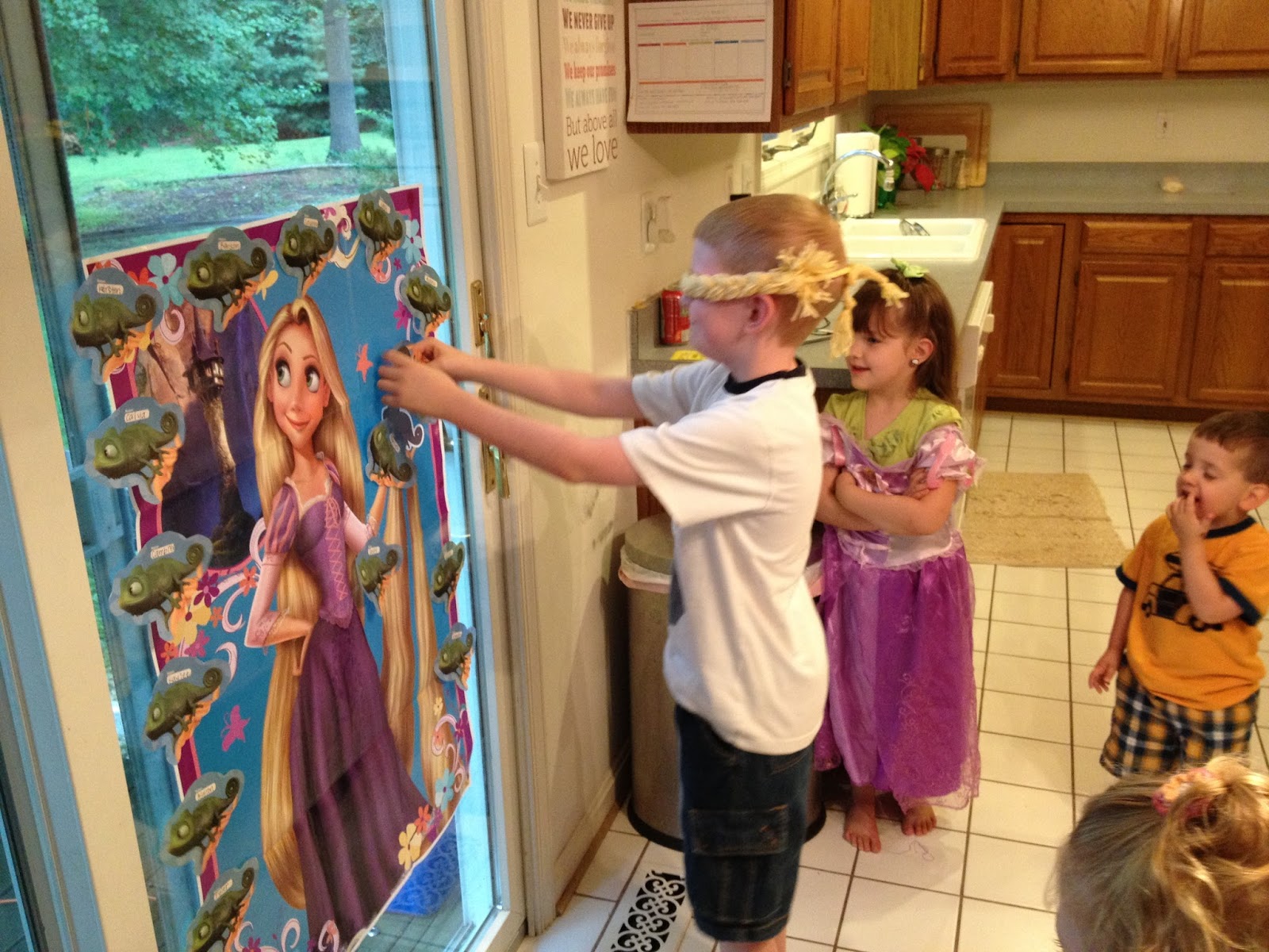 This year Savvy wanted a Tangled theme party. We played pin Pascal on the poster, keep your lantern floating with frying pans, paint the walls and braided hair tug-o-war.